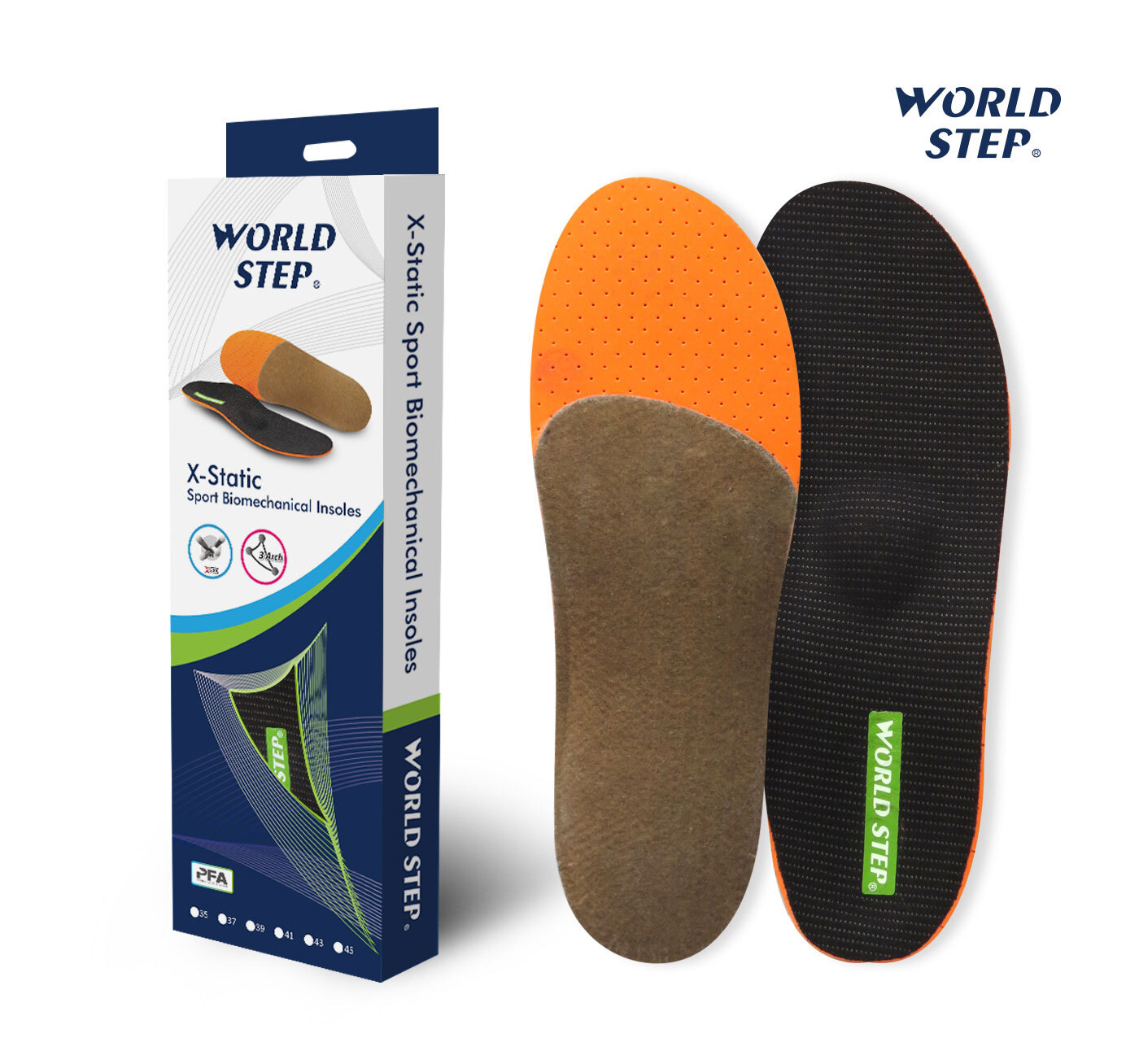 WorldStep Biomechanical Insoles areengineered using a database of 230,000 Asian foot profiles. We combine 5cutting-edge U.S. materials to create our signature 3D 6-Point structuraldesign.