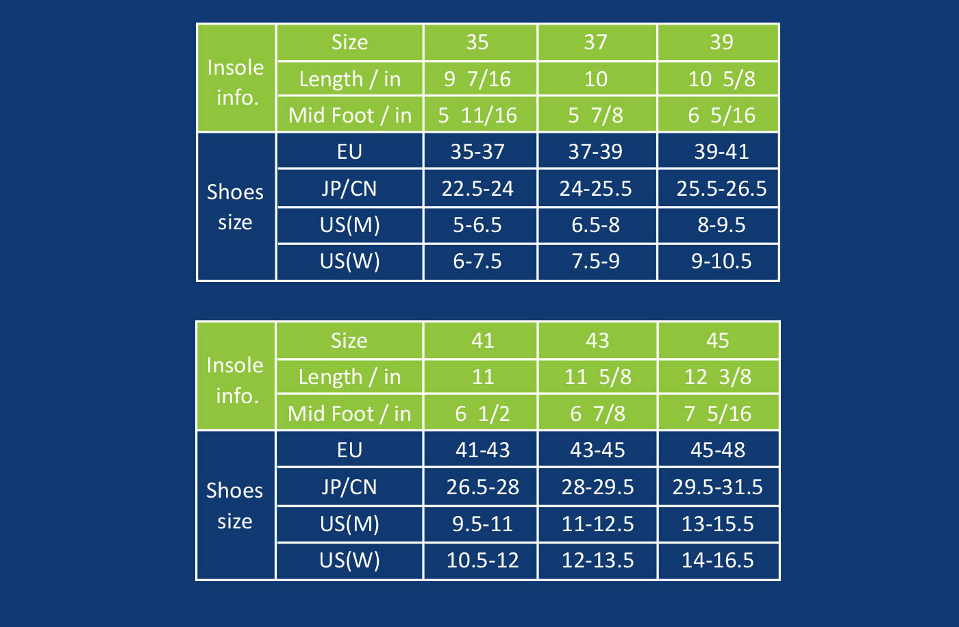 Size: EU 35–45 (Please refer to the SizeChart for details).