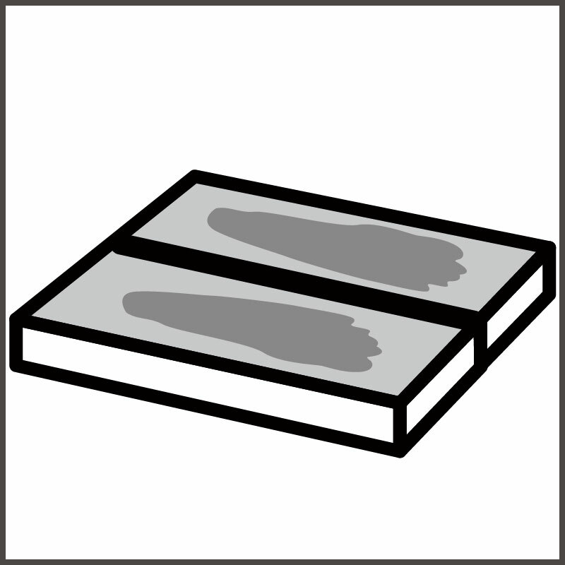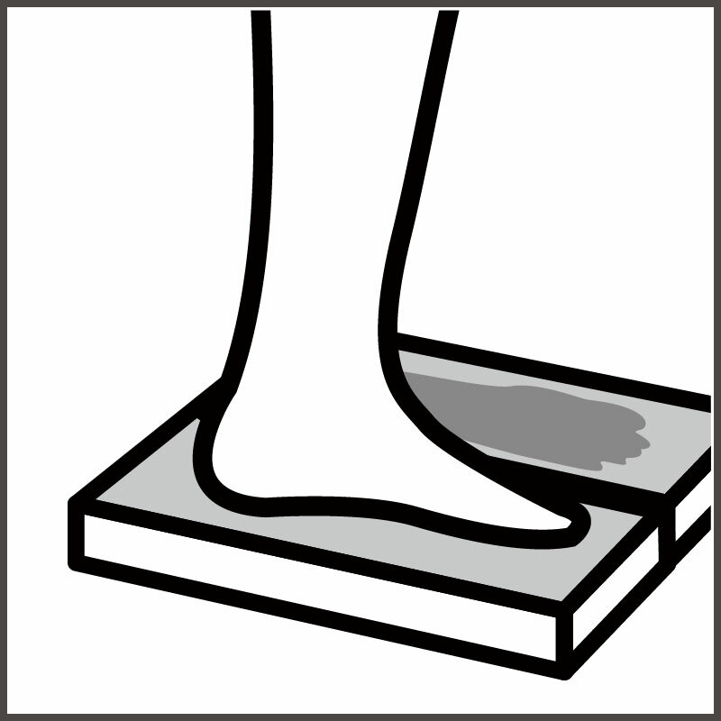 將左腳輕放於右側海綿上,同步驟2方式取得右腳足模。