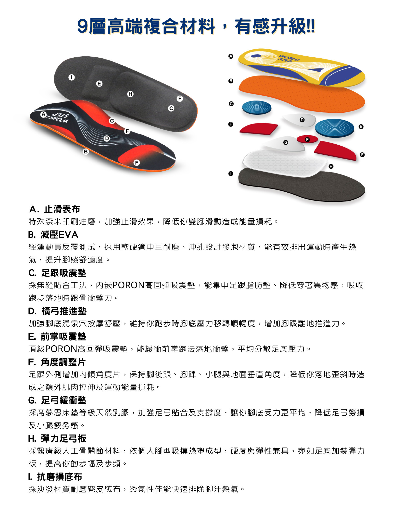 高彈性足弓板 ➤ 放鬆足底筋膜,降低足弓疲勞與小腿緊繃